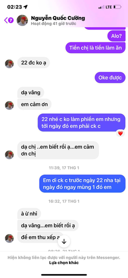 Bản ghi tin nhắn Messenger riêng tư giữa Tom Nguyen và Nguyễn Sinh Thanh
